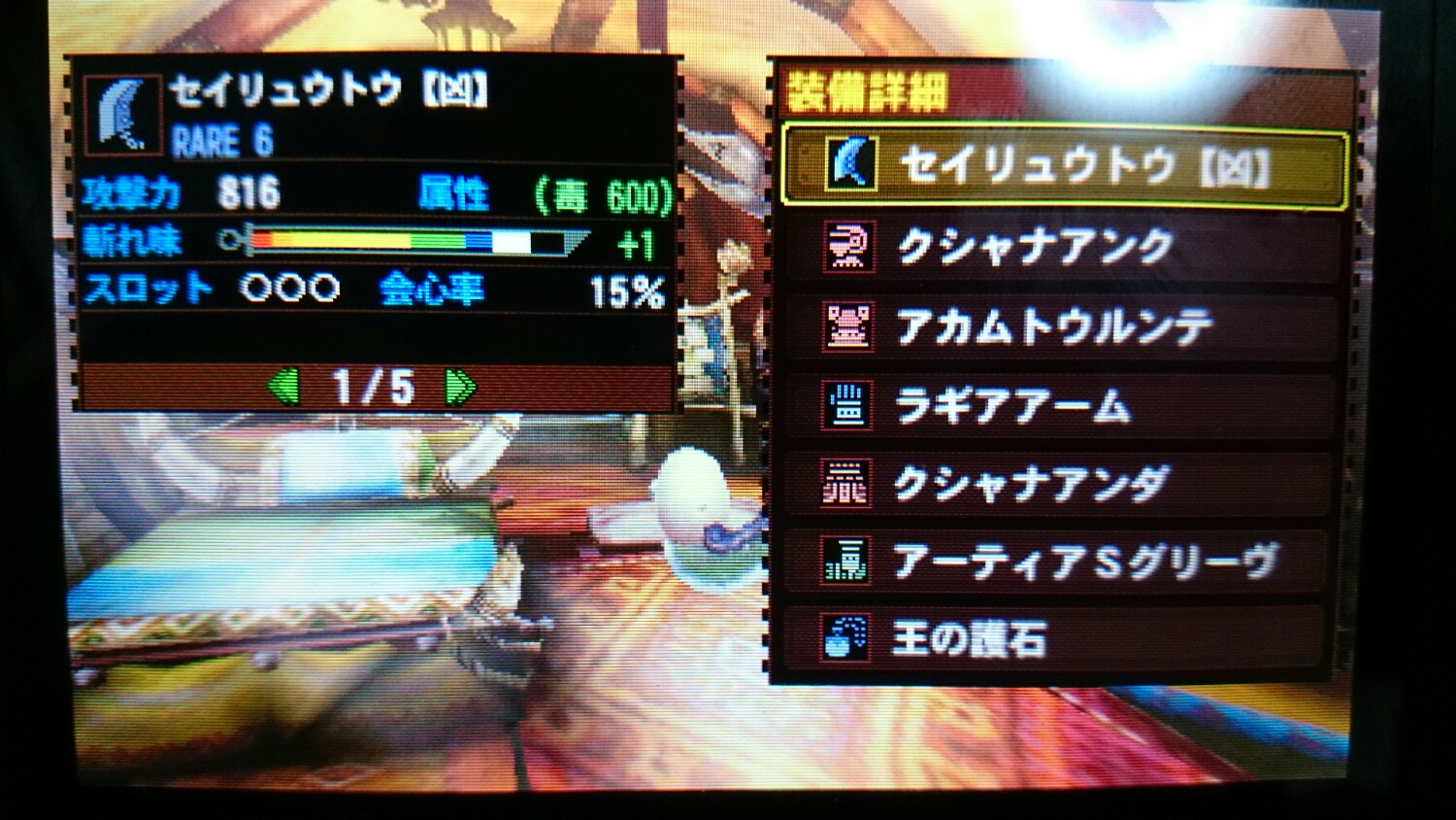 クシャルには、ガルルガ大剣の"セイリュウトウ【凶】"を覚醒させて使っていました。