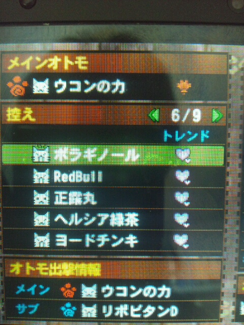 メインオトモ名→ウコンの力(写真左)